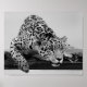 The leopard is a symbol meaning a valiant and hardy warrior. Leopard skins were worn by priests of ancient Egypt to ward off evil spirits. Leopards, like cougars and jaguars, are also considered to be familiars for shamans. In African lore, the leopard is stealthy, shrewd, solitary and loyal only to its own cubs. A Tanzanian proverb reads: "He who dines with the leopard is liable to be eaten." The leopard is the smallest of the big cats. The other three are tigers, lions and jaguars. The leopard will consume almost any animal it can hunt down and can run at speeds of up to 36 miles per hour. The leopard is a real photo with the background altered and converted to black and white. This is the smallest size, but it can be made much larger.