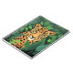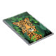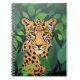 Notebook in a leopard with bright, intense eyes peering through lush green foliage. The sharp contrast between the leopard's spotted fur and the vibrant leaves creates a striking visual effect.