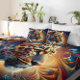 This stunning duvet cover showcases a mesmerizing leopard intertwined with colorful, swirling patterns