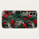 An exotic jungle pattern with leopards, tropical jungle foliage and red roses on a contrasting black background make this phone case pop with unique style. A diamond shaped frame surrounds your monogram initial to make this case uniquely you. Colors include light beige, green, red and black. Personalize with your monogram.