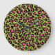 Leopard Pattern in Raspberry on Lime Green Large Clock