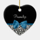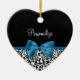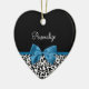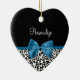 Leopard Print Animal Pattern Pretty Blue Bow Ceramic Ornament