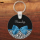 Leopard Print Animal Pattern Pretty Blue Bow Keychain