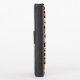 Case in a digital textile print in a textured leopard pattern - leopard spots in black, accented with rust, on a tan / beige background