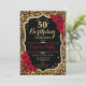 Leopard Print Black Gold Photo 50th Birthday Invitation