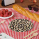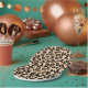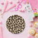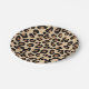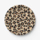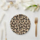 Paper plates in a leopard animal print in black and rust brown spots on a tan background