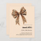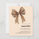 A soft beige background, decorated with a large bow with leopard print. Personalize and add a name and party details.