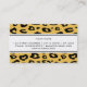 Leopard print business card template. Wild exotic animal print business card design. Personalizable template with elegant script text and custom background color. Professional look with trendy spots pattern. Great for nail and beauty salon, spa, fashion designer, interior designer