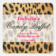 leopard print Candy Buffet Sticker. Great for Candy buffets or cupcake tables at weddings, birthday parties, Baby showers, Communion, Confirmations and lots more! Design features background leopard print in black and gold. Wording, text color and style can be changed in the 'Customize' Menu. perfect for animal or safari themed parties
