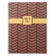 A trendy chevron pattern features rich burgundy red and bright white layers sandwiching layers of fashionable leopard print. A deep brown line separates the chevron columns for a classy final touch. Customize the monogram on this notebook with your initial to make it uniquely yours.
