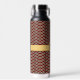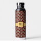 A trendy chevron pattern features rich burgundy red and bright white layers sandwiching layers of fashionable leopard print. A deep brown line separates the chevron columns for a classy final touch. Customize the monogram with your initial to create a water bottle that is uniquely yours.