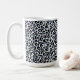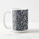 This ceramic coffee mug is shown with an animal blue leopard print.