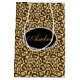 You found that special someone the perfect gift and now you need the perfect way to present it. This is a fun leopard print gift bag featuring leopard prints, diamond looking oval with custom name/wording monogram. Available in all sizes.