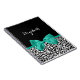 Personalize by adding the name of any girly girl to this trendy black and white leopard print notebook with a girly emerald green ribbon tied into a cute bow. This stylish animal print design is a flat printed image, and does not contain actual ribbon.