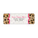 A return address label featuring a background of leopard print. Personalize with your name and address over sheer center section. Pink Trim. Look for matching items at The Pink Schoolhouse.