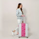 Luggage in an updated take on a classic leopard print - leopard spots in deep fuchsia pink on a pastel pink background