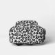Backpack in a leopard animal print in in black spots accented with gray on a white background