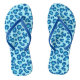 Flip-flops in a digital textile print in a textured leopard pattern - leopard spots in dark denim blue, accented with medium blue, on a light chambray blue background