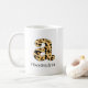 Personalize this custom leopard print lowercase letter "a" coffee mug by adding a name. The options to change the color of the text for the name, its size, and type of font are available.