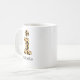 Personalize this custom leopard print lowercase letter "i" coffee mug by adding a name. The black text for the custom name is in a girly handwritten type font.
