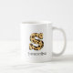 Personalize this custom leopard print lowercase letter "s" coffee mug by adding a name. The black text for the custom name is in a girly handwritten type font.