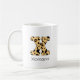 Personalize this custom leopard print lowercase letter "x" coffee mug by adding a name. The black text for the custom name is in a girly handwritten type font.