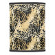 This stylish lamp shade is shown in an animal leopard print with black trim.