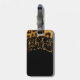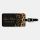 Chic luggage tag features leopard print embellished with a black lace doily personalized with your information.