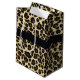 Medium glossy gift bag with an image of a beautiful leopard print and optional black ribbon, black bow, and gold diamond-studded leopard head. See matching large gift bag. See the entire Safari Gift Bag collection in the PARTY FAVORS section.