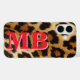 Create your own custom monogram iPhone case featuring your personalized initials on a leopard print background