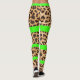 Leopard Print Neon Green Striped Womens Leggings