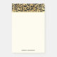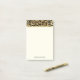 Sticky notes with a stylish pattern. The top border is designed with an exotic black leopard spots on a gold background. Wild yet elegant style. A thin faux gold foil stripe below the pattern. Writing space is a soft cream color. Personalize with a name.