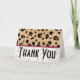 A thank you card featuring a leopard print background and hot pink trim. Text reads "Thank You" over sheer background.