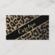 An elegant gold and leopard glitter background with a gold label on the front of your business card add elegance and fun.