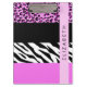 Leopard Print, Zebra Print, Pink, Your Name Clipboard