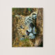 Game puzzle shown with a photo print of a beautiful leopard. Customize this item or buy as is. Stock Image
