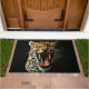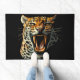 Fierce Powerful Leopard Roaring attack portrait close up with long fangs. Original vector illustration isolated on white Copyright BluedarkArt TheChameleonArt.