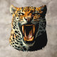 Fierce Powerful Leopard Roaring attack portrait close up with long fangs. Original vector illustration isolated on white Copyright BluedarkArt TheChameleonArt.