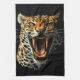 Fierce Powerful Leopard Roaring attack portrait close up with long fangs. Original vector illustration isolated on white Copyright BluedarkArt TheChameleonArt.