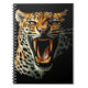 Fierce Powerful Leopard Roaring attack portrait close up with long fangs. Original vector illustration isolated on white Copyright BluedarkArt TheChameleonArt.