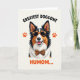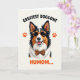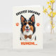 This card features a centered portrait of an upright, humanlike dog posed with easy confidence on an off‑white background. Its fur mixes black, warm tan‑orange, and bright white, and the wide open smile shows a small peek of pink tongue that feels friendly and affectionate ❤️. Orange-framed sunglasses sit across its face, giving it a cool, relaxed look, as if it’s sharing a private joke with someone it adores. Around its neck is an orange-and-black spotted bow tie that adds a fun, dressed-up touch without feeling fussy. Above the head, arched uppercase text in orange reads “GREATEST DOGGONE,” spaced to follow the curve. Below the portrait, matching orange uppercase text reads “HUMOM...” as two orange paw prints sit on either side like little hugs 🌼. The lines are crisp and the colors stay mostly warm orange, black, and white, with the paw prints and lettering standing out clearly against the pale backdrop. The final detail is the pair of bright orange paw prints placed symmetrically near the lower text.