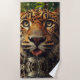Leopard Stares While Lapping Water in Jungle Beach Towel