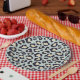 Teal leopard print paper plate. This item is part of a collection that is customizable.