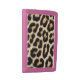 Faux Leopard Skin Wallet with pink trim is a TriFold Nylon Wallet that you can customize with your name, or the name of someone you would like to gift with this cute, personalized wallet. Just add your text and then choose from a variety of colors to make it your own. This wallet is made with super-durable nylon, making it ready for school, beaches, surf, or the urban jungle. Wallet measures 4.5” x 3.1” (closed) & 4.5” x 9.5" (open). 100% nylon construction with hook and loop closure. Full-length bill pocket, two credit card pockets, and ID card window, and is recommended for ages 13+.