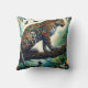 A colorful leopard adorns a Throw Pillow, perched gracefully on a branch surrounded by vibrant foliage and tropical birds, capturing the essence of wild beauty and artistic expression.