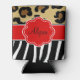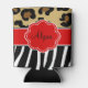 Show off your style in a fun way with this black and red leopard and zebra print personalized koozie.