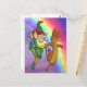 Leprechaun and Mouse Dancing with Rainbow Postcard