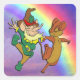 Leprechaun and Mouse Dancing with Rainbow Square Sticker
