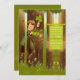 A cute St. Patrick's Day invitation featuring a young boy leprechaun walking through the forest.