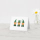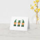 This is a fun illustration of garden gnomes styled for St. Patrick's day. They feature four leaf clovers and a bright orange beard.